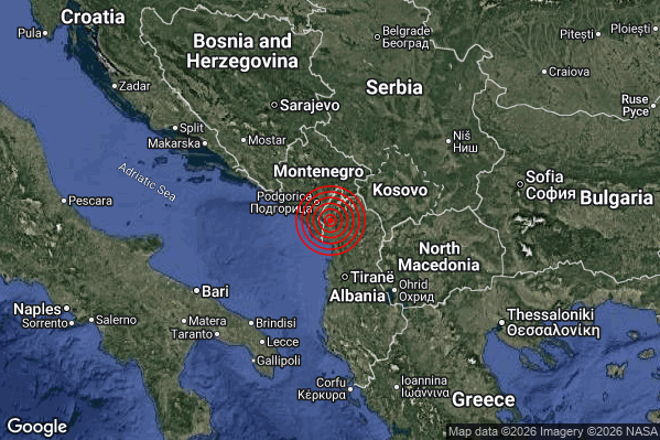 Oggi 07/04/2026 alle ore 13:13:02 (ora locale Italiana – 11:13:02 UTC) è stato registrato un Moderato #Terremoto di magnitudo M3.5 con epicentro “Albania [Land]” Latitudine: 42.18 Longitudine: 19.51 mostrato sulla mappa.