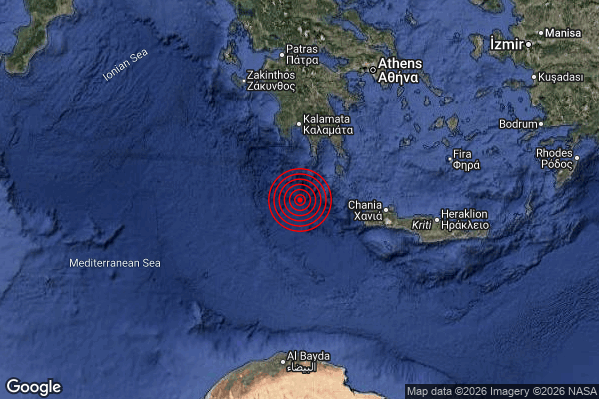Oggi 08/04/2026 alle ore 13:34:59 (ora locale Italiana – 11:34:59 UTC) è stato registrato un Forte #Terremoto di magnitudo M4.9 con epicentro “Greece [Sea]” Latitudine: 35.7 Longitudine: 22.11 mostrato sulla mappa.