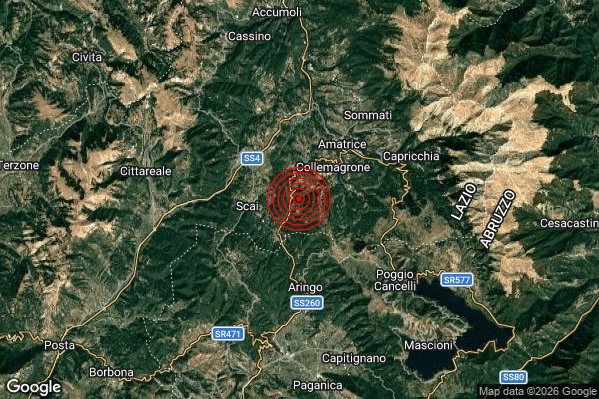 Oggi 10/04/2026 alle ore 20:48:27 (ora locale Italiana – 18:48:27 UTC) è stato registrato un Lieve #Terremoto di magnitudo M2.0 con epicentro “4 km SW Amatrice (RI)” Latitudine: 42.6 Longitudine: 13.26 mostrato sulla mappa.