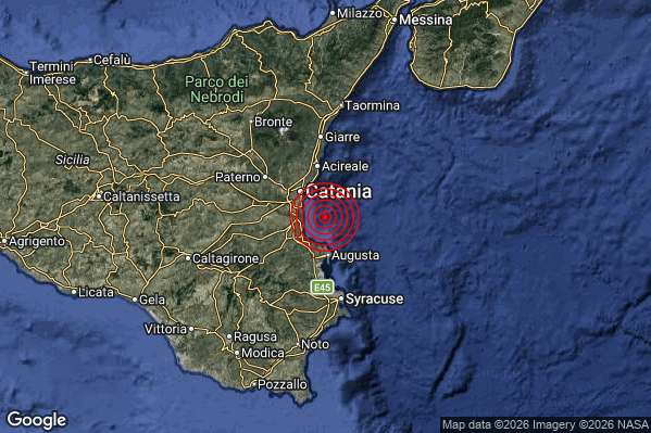Oggi 11/04/2026 alle ore 08:16:55 (ora locale Italiana – 06:16:55 UTC) è stato registrato un Lieve #Terremoto di magnitudo M2.0 con epicentro “Costa Catanese (Catania)” Latitudine: 37.41 Longitudine: 15.2 mostrato sulla mappa.