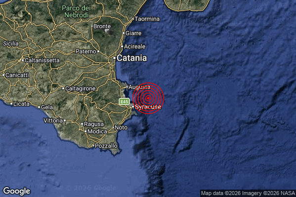 Oggi 14/04/2026 alle ore 13:37:47 (ora locale Italiana – 11:37:47 UTC) è stato registrato un Debole #Terremoto di magnitudo M2.6 con epicentro “Costa Siracusana (Siracusa)” Latitudine: 37.15 Longitudine: 15.45 mostrato sulla mappa.