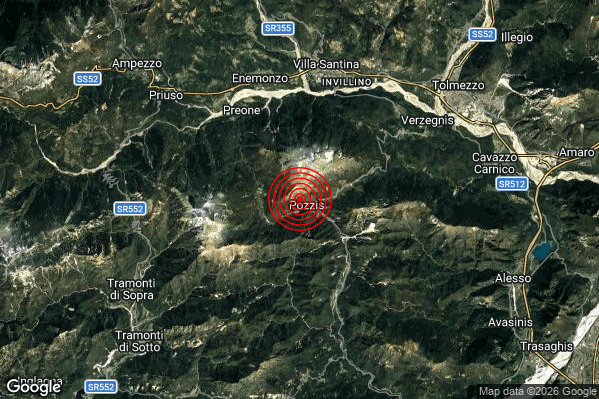 Oggi 15/04/2026 alle ore 01:11:24 (ora locale Italiana – 23:11:24 UTC) è stato registrato un Leggero #Terremoto di magnitudo M2.9 con epicentro “6 km SE Preone (UD)” Latitudine: 46.35 Longitudine: 12.91 mostrato sulla mappa.