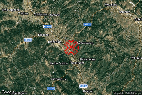 Oggi 16/04/2026 alle ore 12:11:23 (ora locale Italiana – 10:11:23 UTC) è stato registrato un Debole #Terremoto di magnitudo M2.4 con epicentro “4 km E Umbertide (PG)” Latitudine: 43.29 Longitudine: 12.38 mostrato sulla mappa.