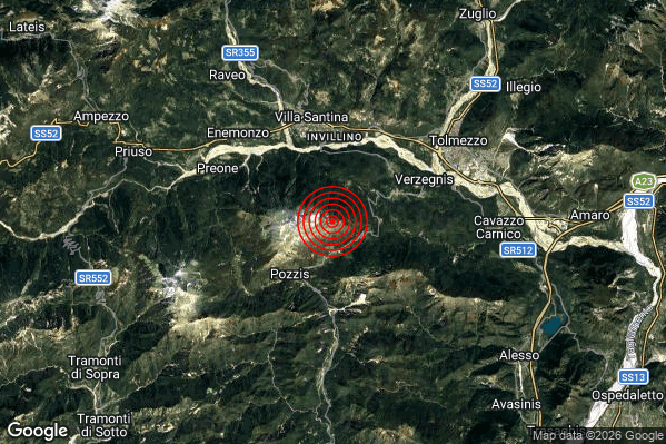 Oggi 17/04/2026 alle ore 13:24:46 (ora locale Italiana – 11:24:46 UTC) è stato registrato un Leggero #Terremoto di magnitudo M3.1 con epicentro “5 km W Verzegnis (UD)” Latitudine: 46.37 Longitudine: 12.94 mostrato sulla mappa.