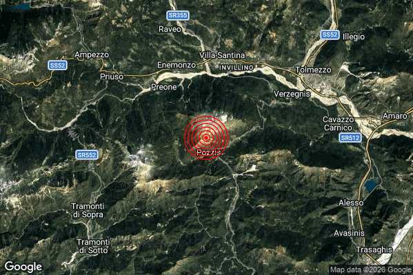 Oggi 17/04/2026 alle ore 17:23:04 (ora locale Italiana – 15:23:04 UTC) è stato registrato un Leggero #Terremoto di magnitudo M3.0 con epicentro “5 km SE Preone (UD)” Latitudine: 46.36 Longitudine: 12.91 mostrato sulla mappa.
