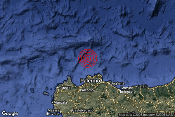 N.B. I valori della magnitudo e delle coordinate rappresentano la migliore stima con i dati ufficiali a disposizione. Eventuali nuovi dati o ulteriori analisi potrebbero far variare tali stime.