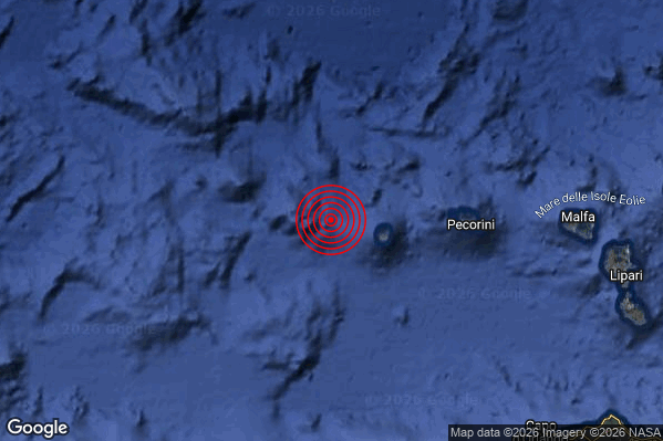 N.B. I valori della magnitudo e delle coordinate rappresentano la migliore stima con i dati ufficiali a disposizione. Eventuali nuovi dati o ulteriori analisi potrebbero far variare tali stime.