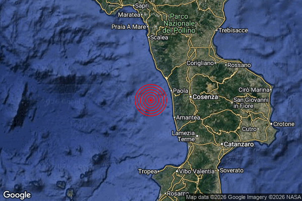 Oggi 27/04/2026 alle ore 22:27:57 (ora locale Italiana – 20:27:57 UTC) è stato registrato un Leggero #Terremoto di magnitudo M2.8 con epicentro “Costa Calabra nord-occidentale (Cosenza)” Latitudine: 39.28 Longitudine: 15.81 mostrato sulla mappa.
