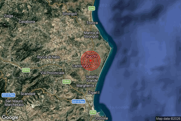 Oggi 30/04/2026 alle ore 22:29:13 (ora locale Italiana – 20:29:13 UTC) è stato registrato un Lieve #Terremoto di magnitudo M2.2 con epicentro “9 km E Rocca di Neto (KR)” Latitudine: 39.18 Longitudine: 17.1 mostrato sulla mappa.